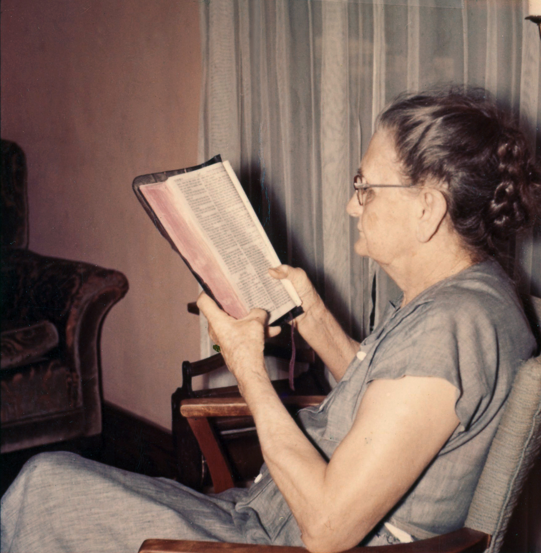 This tape is a copy of the recording of an interview with Mother at the nursing home in Elkhorn Iowa on May 26, 1977. We wish we would have done this earlier so that Mom would have remembered more. However, we throught you would enjoy hearing her voice again. Have a nice Christmas.